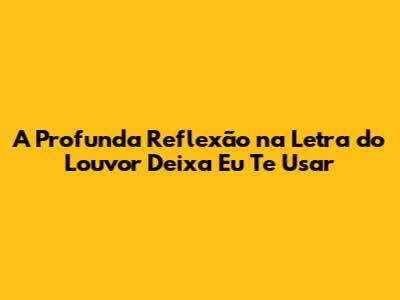 Uma das principais reflexões que a música suscita é a necessidade de abandonar o controle. Muitas vezes, tentamos controlar nossas vidas, nossos planos e nossos projetos, esquecendo que Deus tem um plano perfeito para nós. "Deixa Eu Te Usar" nos encoraja a confiar em Deus, a entregar a Ele o controle de nossas vidas e a permitir que Ele nos guie. Essa entrega pode trazer paz, alegria e realização, pois sabemos que estamos no caminho certo, seguindo a vontade de Deus.