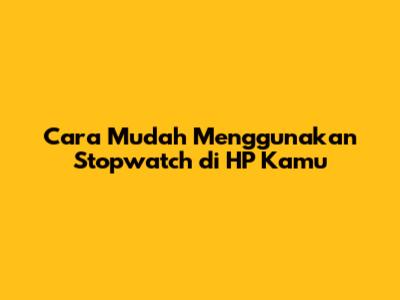 Cara Mudah Menggunakan Stopwatch Di HP Kamu
