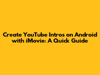 Create YouTube Intros On Android With IMovie: A Quick Guide