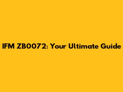 IFM ZB0072: Your Ultimate Guide