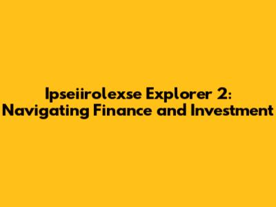 Ipseiirolexse Explorer 2: Finance And Investment Insights