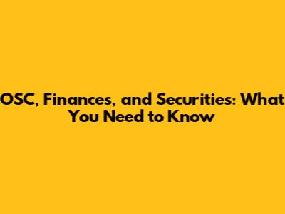 OSC, Finances, And Securities: What You Need To Know