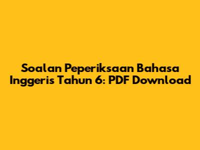 Soalan Peperiksaan Bahasa Inggeris Tahun 6: PDF Download