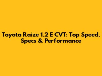 Toyota Raize 1.2 E CVT: Top Speed, Specs & Performance