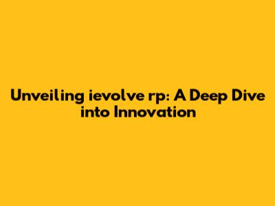 Unveiling Ievolve Rp: A Deep Dive Into Innovation