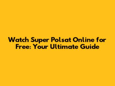 Watch Super Polsat Online For Free: Your Ultimate Guide